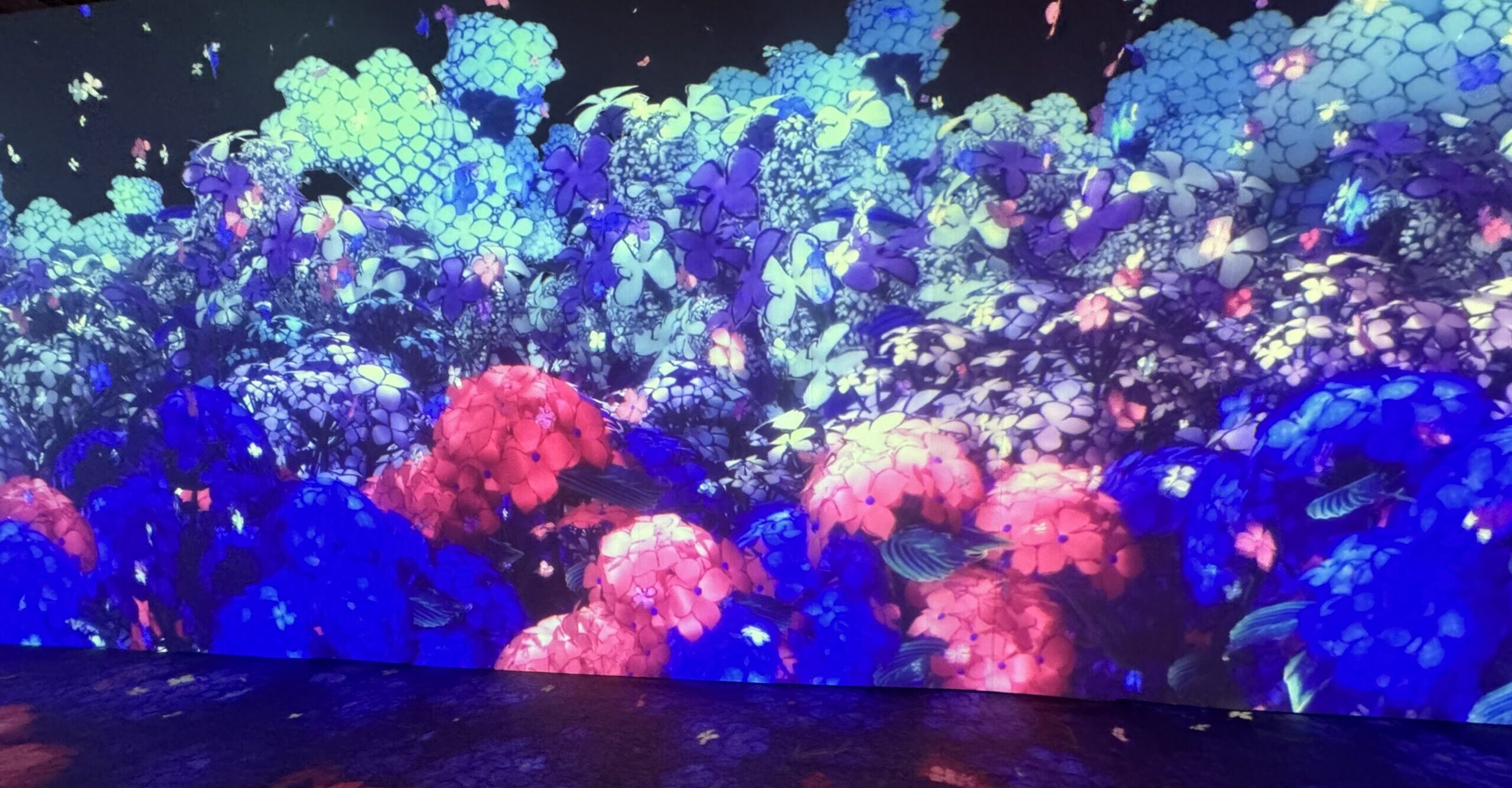 「麗 BEAUTIFUL」「彩 COLORFUL 」など、それぞれのコンセプトに分かれた9つの映像空間を移動して行きます。