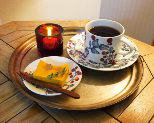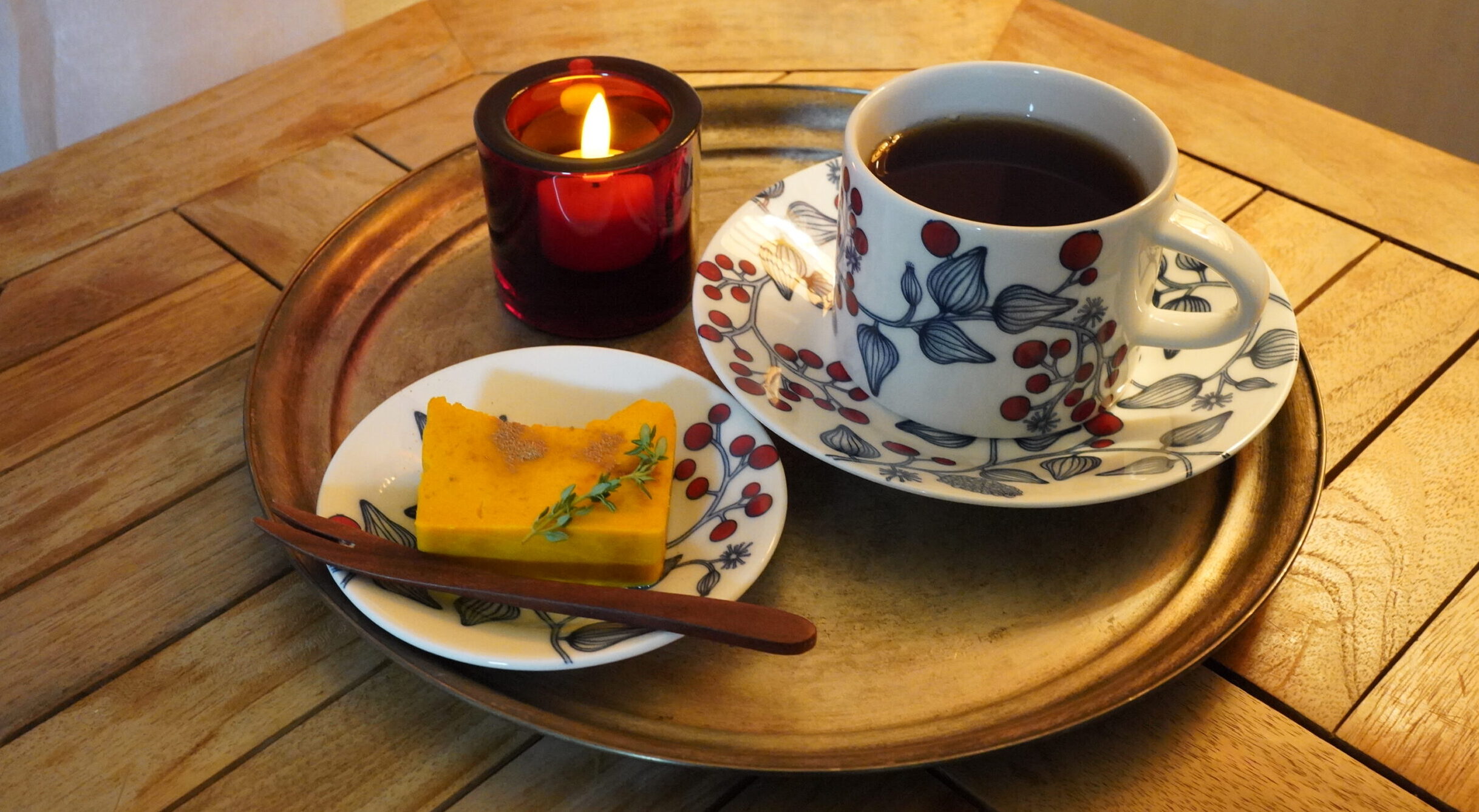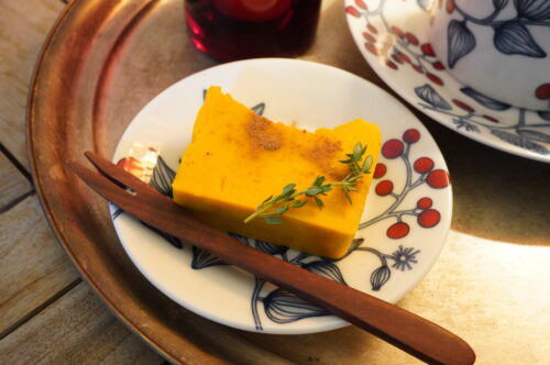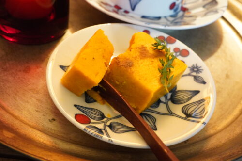 今日はヘルシーなカボチャと豆腐のしっとりケーキでティータイムでした。