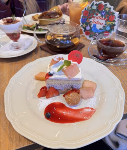 ”りんごのズコットショートケーキのクリスマスプレート” & "ブドウとオレンジのクリスマススパイスティー”