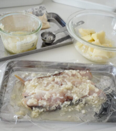先日仕込んだ玉ねぎ発酵ペーストや塩麹を使って